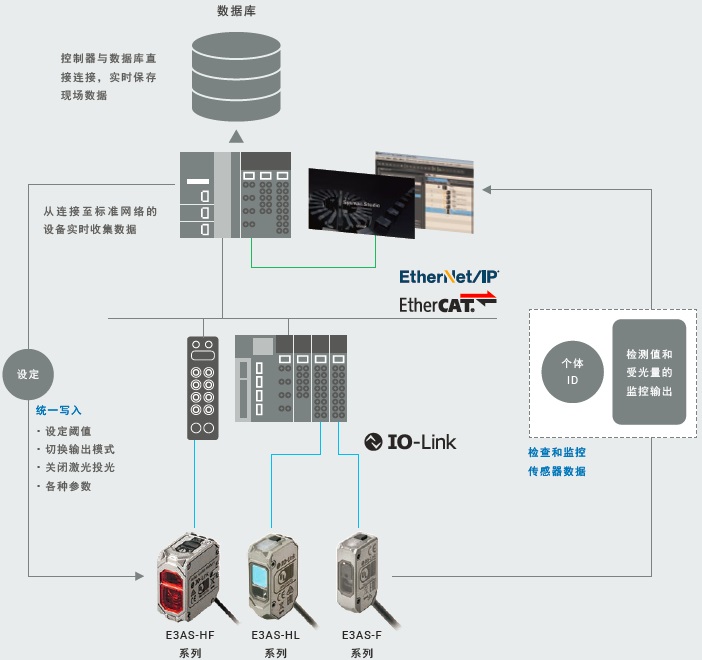 除ON/OFF信号外,IO-Link还可在传感器和上位控制器之间双向收发传感器信息,实时监视传感器状态,减少启动和更换工作中的各种设定工时,并减少意外问题导致的突发设备停机。