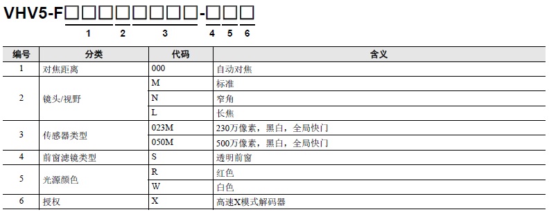 | 500万像素 | 标准 | 有 | VHV5-F000M050M-SWX | |
