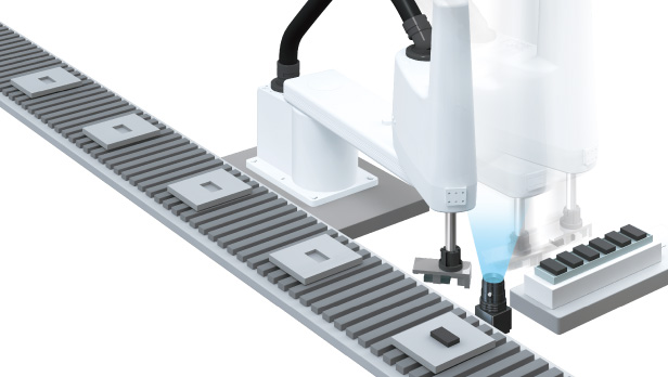 通过统合图像传感器和机器人的控制,可不停机检测,同时在机器人上搭载图像传感器,实现不停机多点检测,最大化检测吞吐量。