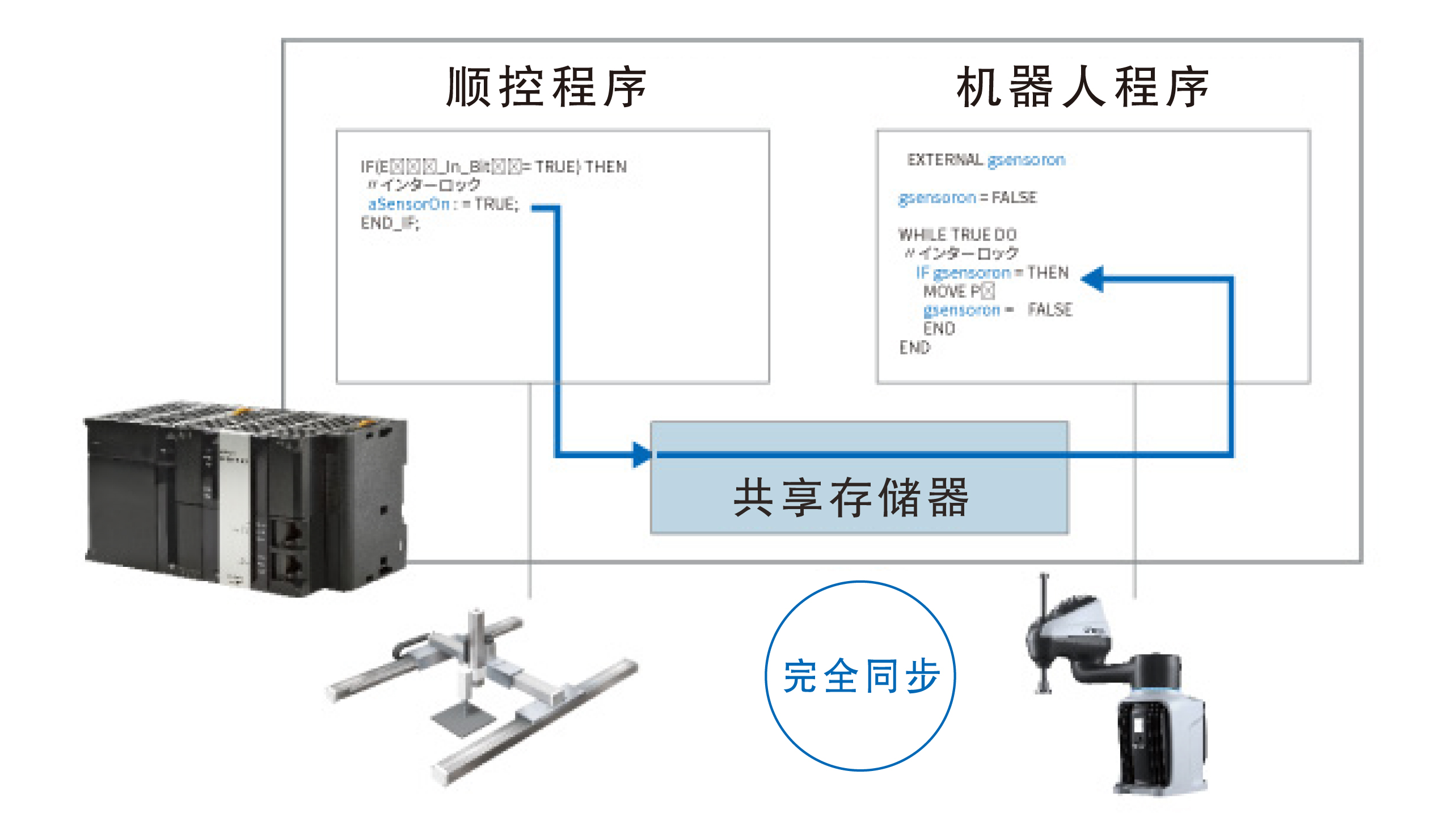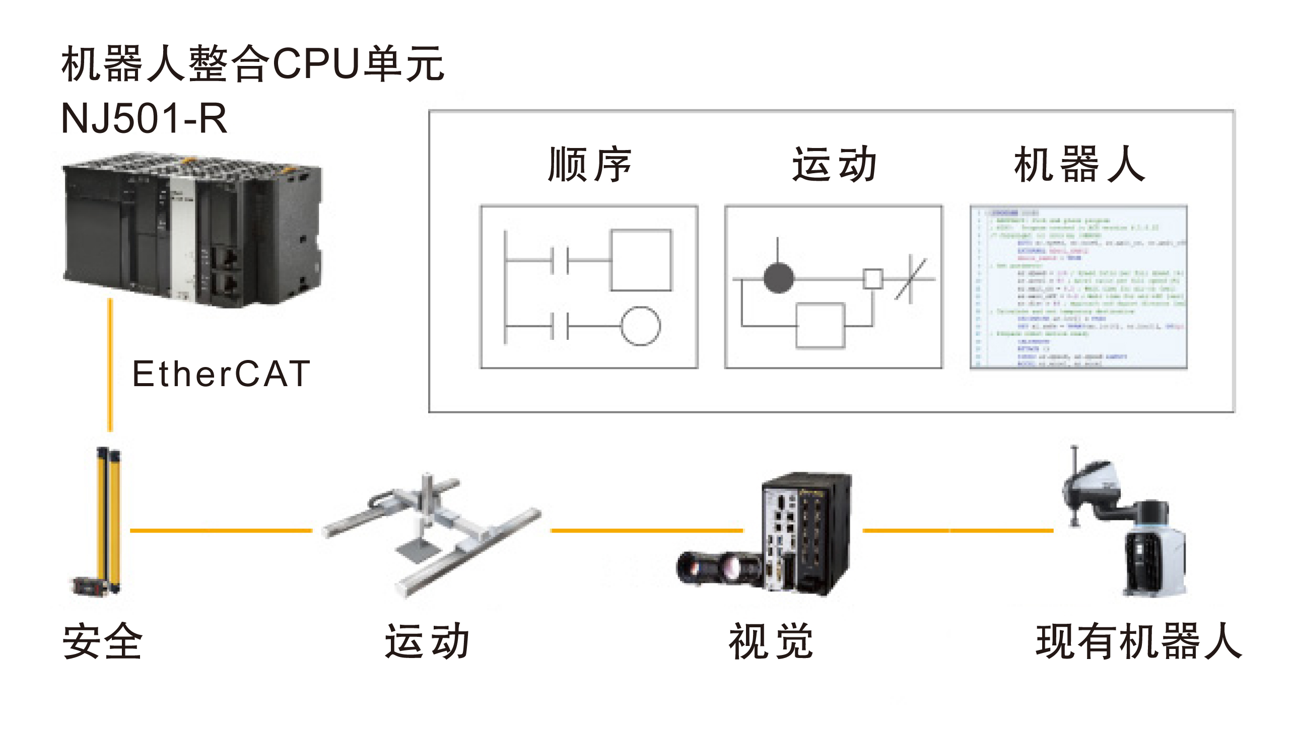 将机器人控制和运动控制统合,通过高速、高度同步协作,灵巧地流畅运转,