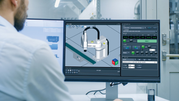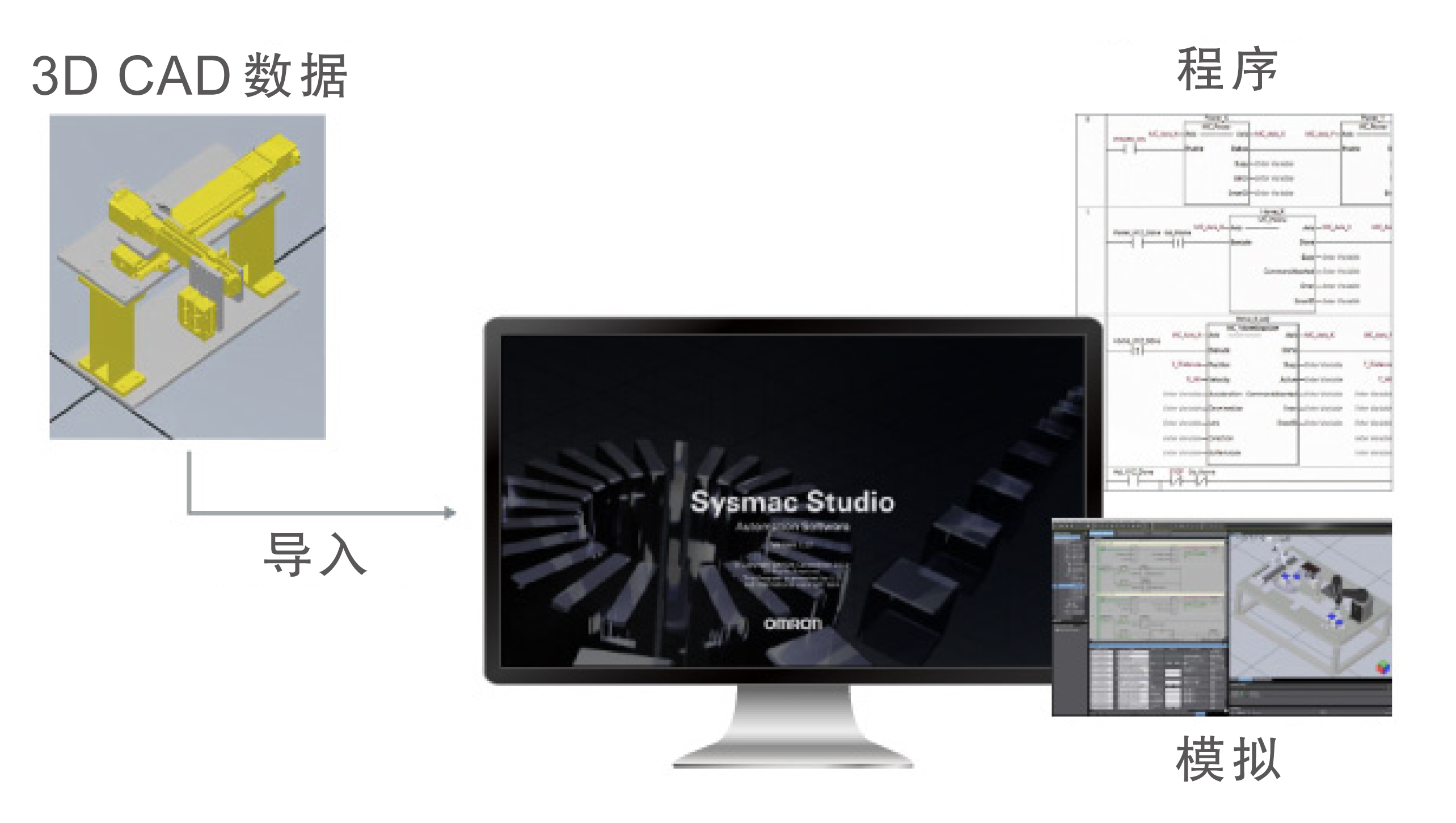 统一迄今为止相互独立的机器人和机械控制的编程语言,确立可在一个软件的统合开发环境中简单模拟的技术。在虚拟环境中将真实环境的生产设备连接起来,远程进行设备启动和维护。