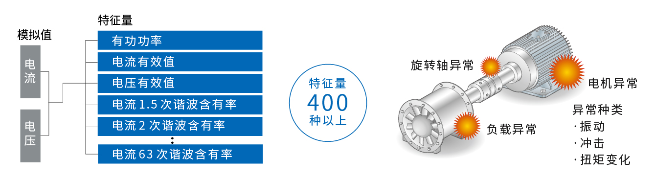 K7DD可利用测量的电压和电流计算出约400种特征量,监视各种生产设备的多种故障模式,在不良发生前提前检测出异常,从而避免过度维护。