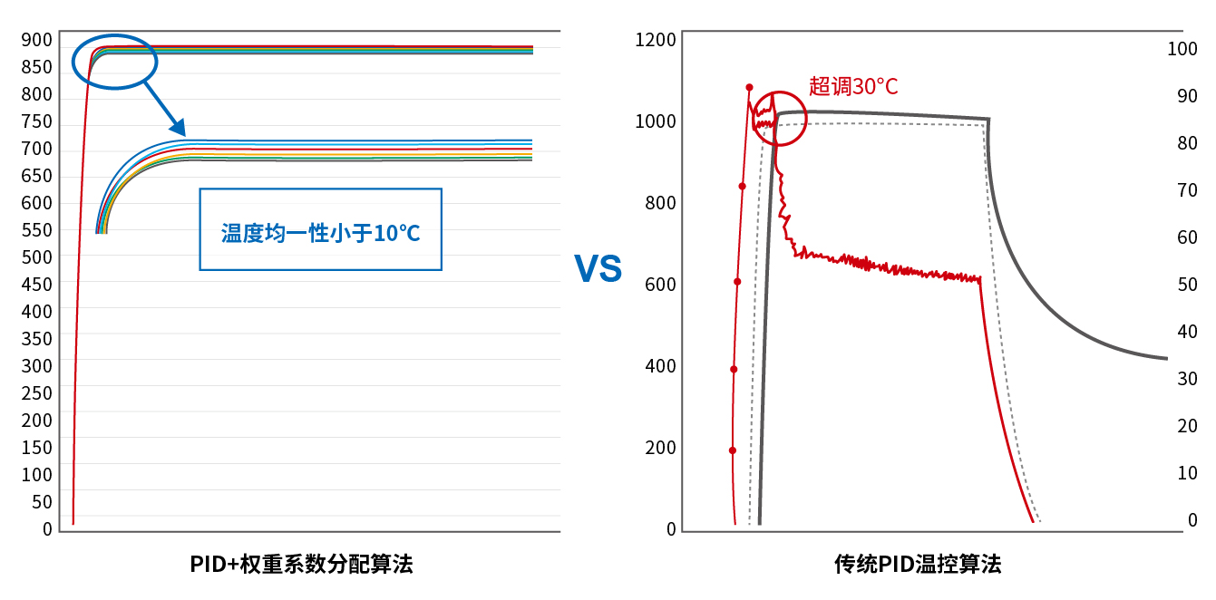 ■ 实现多路高速同步升温控制,且超调小于10℃和震荡小于10秒,TC-WAAFER多点测温温度均一性小于10℃。