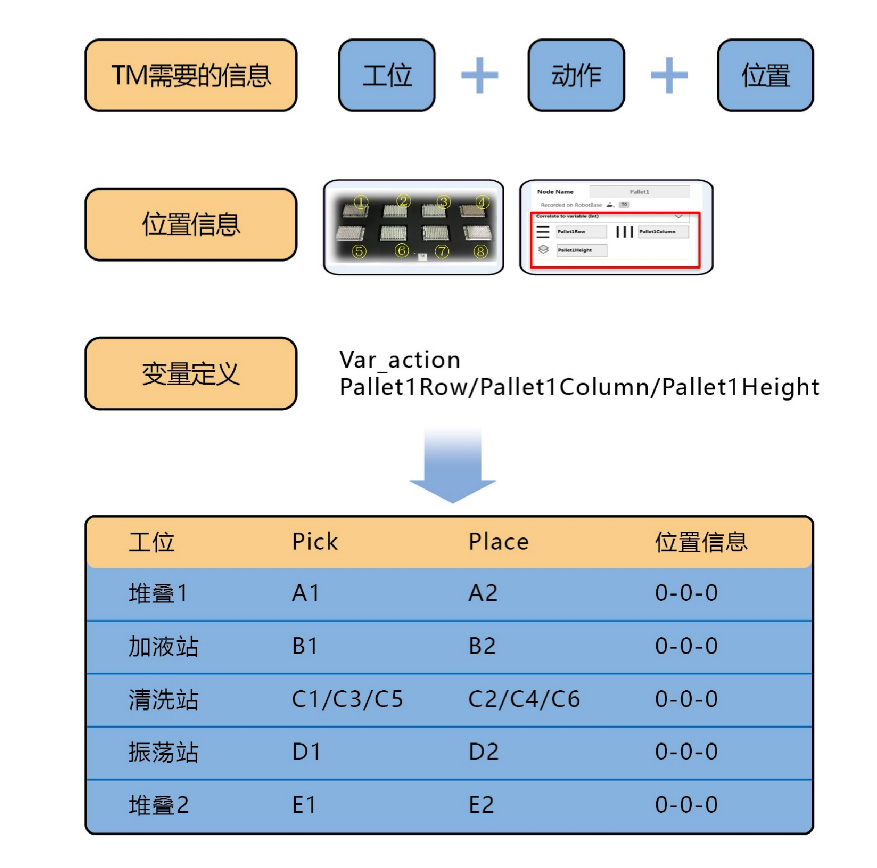 最后通过获取到的工位、动作、位置等信息,建立整体的控制流程与程序框架,最终实现TM协作机器人的柔性流程控制。
