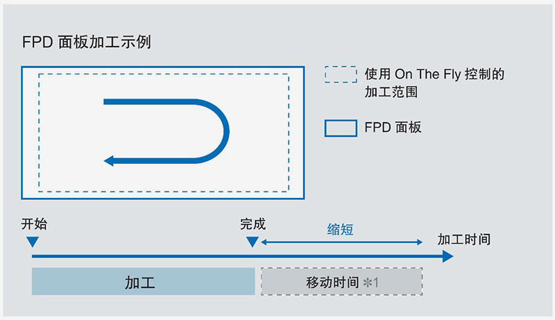以往,工作台停下后才可以加工,移动期间无法同时加工,待机时间导致产能下降。