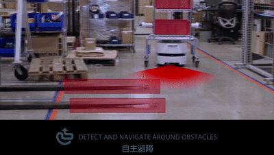 “移动操纵机器人(MoMA)”下方搭载的移动机器人LD / HD系列,不同于传统的自动导引车(AGV),它可以在不使用地面磁条或壁装式信标的情况下进行自主安全导航。