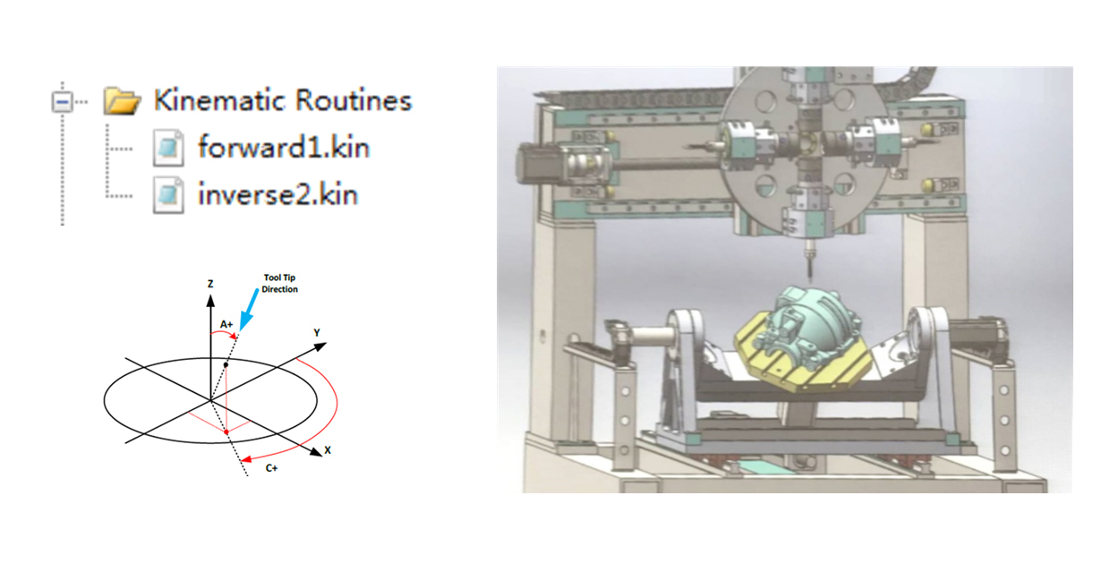 星空(中国)一站式服务官网提供在PMAC上计算5轴正、逆运动学的例程。添加该例程,即可实现5轴加工所需位置及姿势的坐标转换。